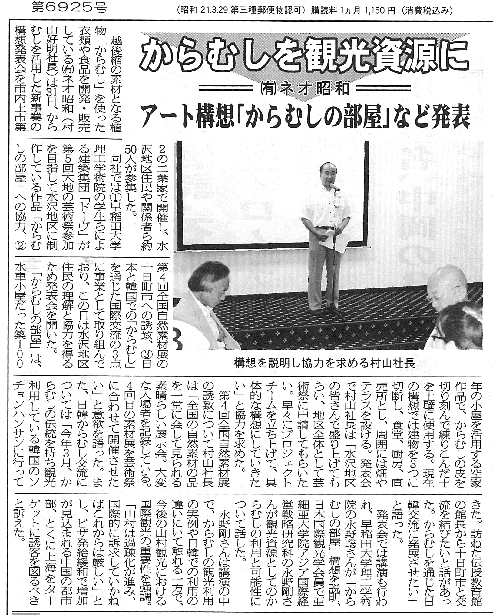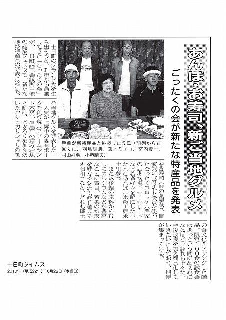 - 十日町タイムス(平成22年10月28日)に掲載されました。