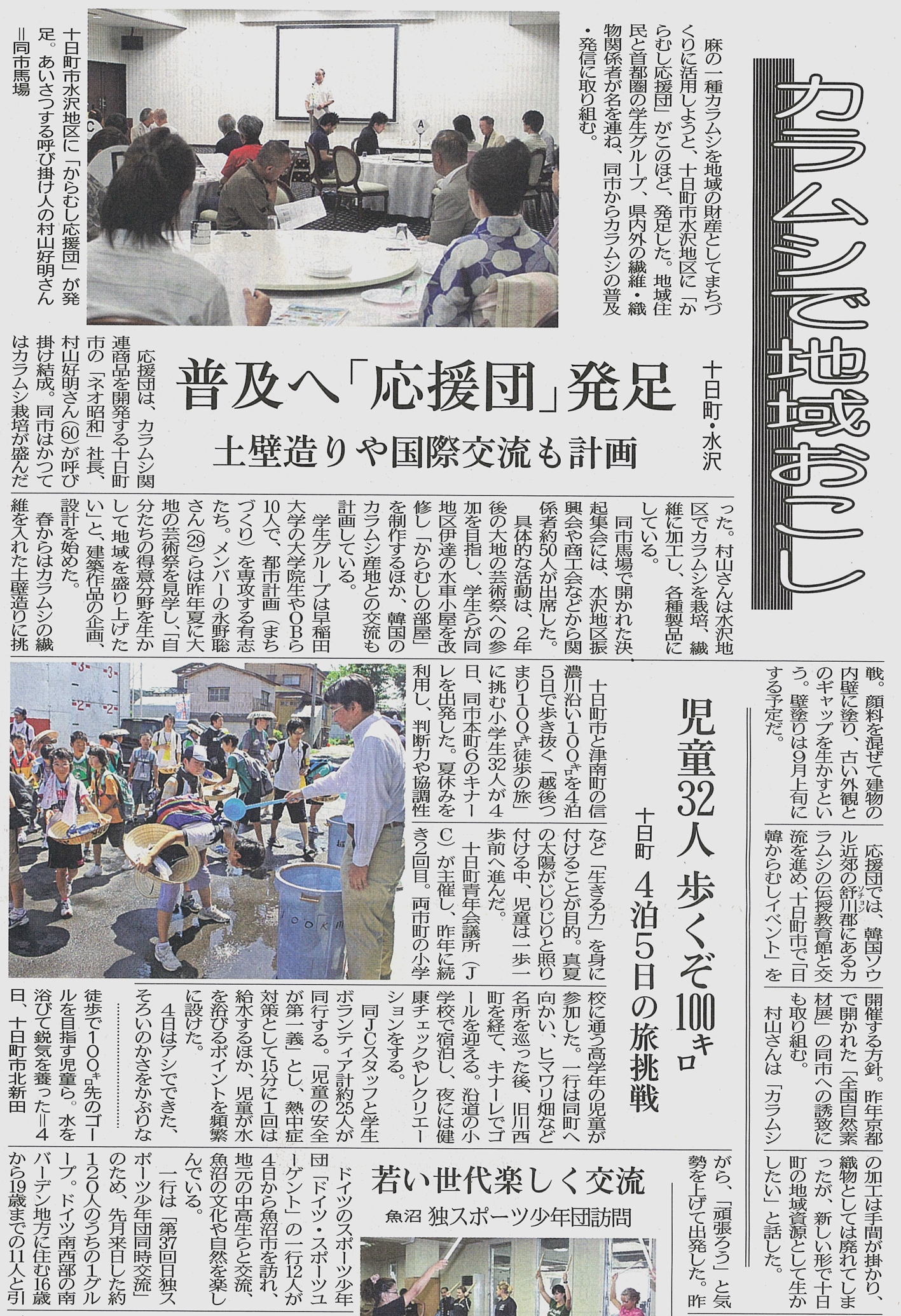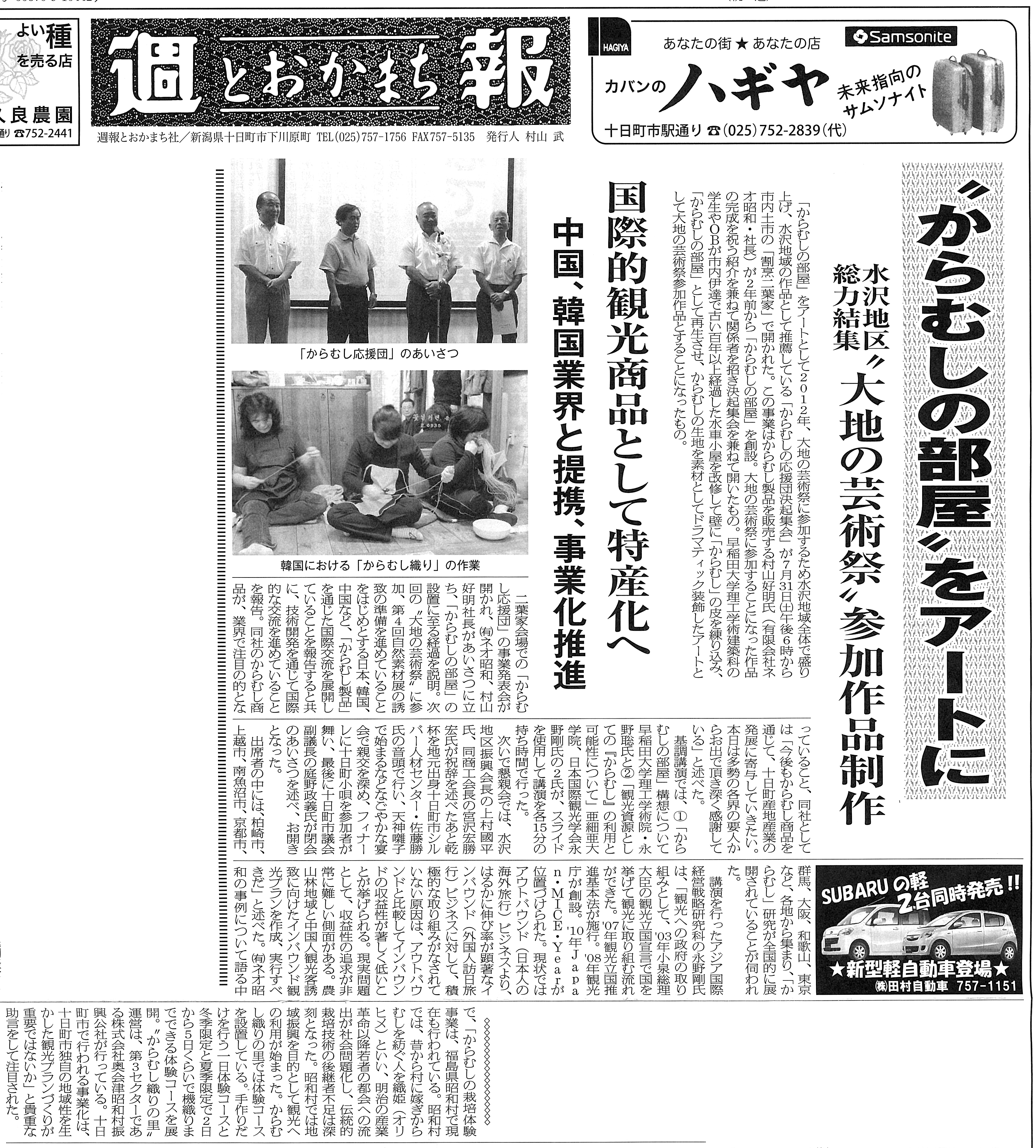 - 新聞「十日町新聞」7月31日開催された「からむし応援団」決起集会が記事掲載されました。