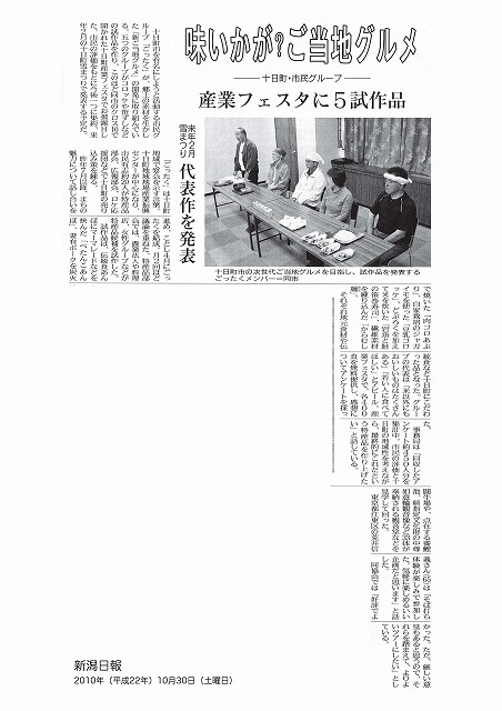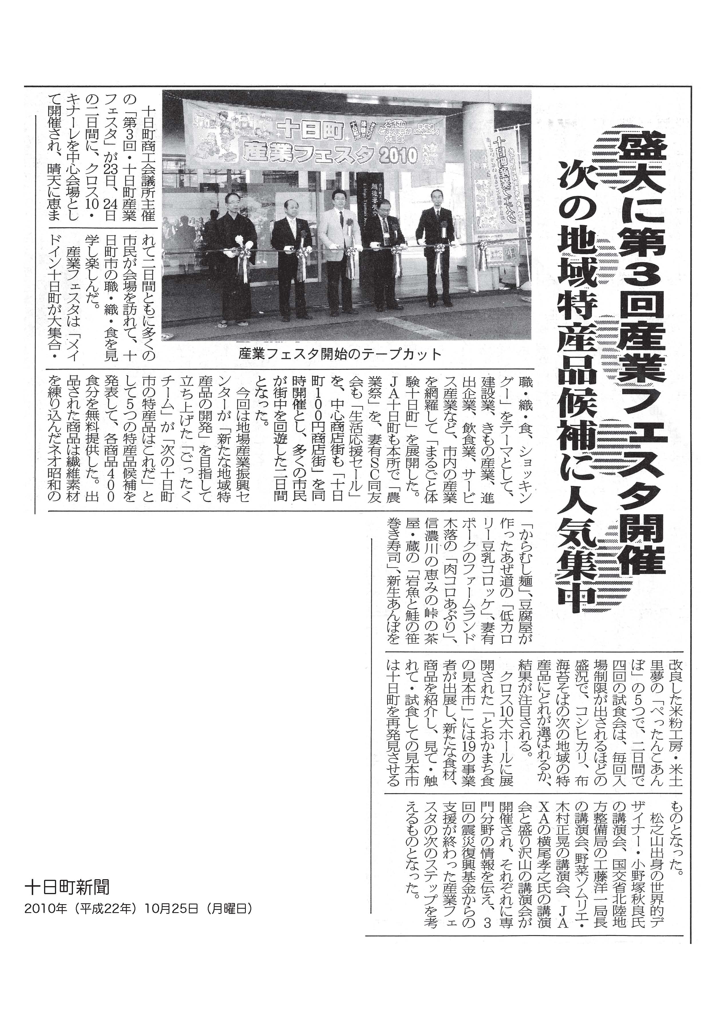 - 十日町新聞(平成22年10月25日)に掲載されました。