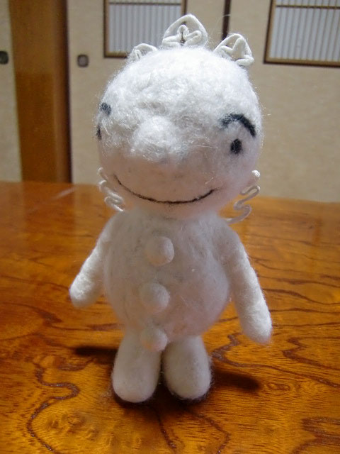 このネージュ君は長岡造形大学川越ゆかり先生が「からむしワタ」とフェルトを使って制作して頂いたものです。
