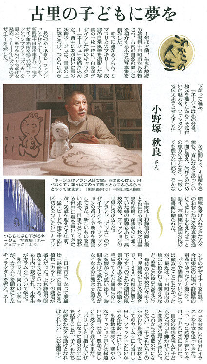 ニッポンセレクト.com はこちら- 元ZUCCA代表小野塚秋良氏と十日町市公式キャラクターネージュ君に関する記事が読売新聞に掲載されました。