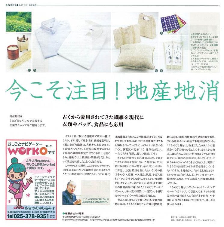 掲載された記事はこちらです。 - 2013年1月24日発行 新潟日報フリーペーパー「assh」に掲載されました。