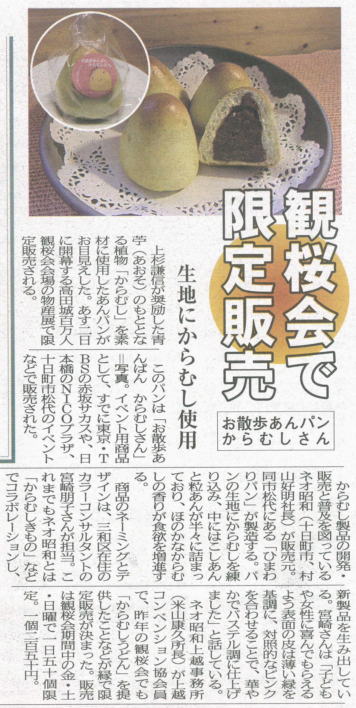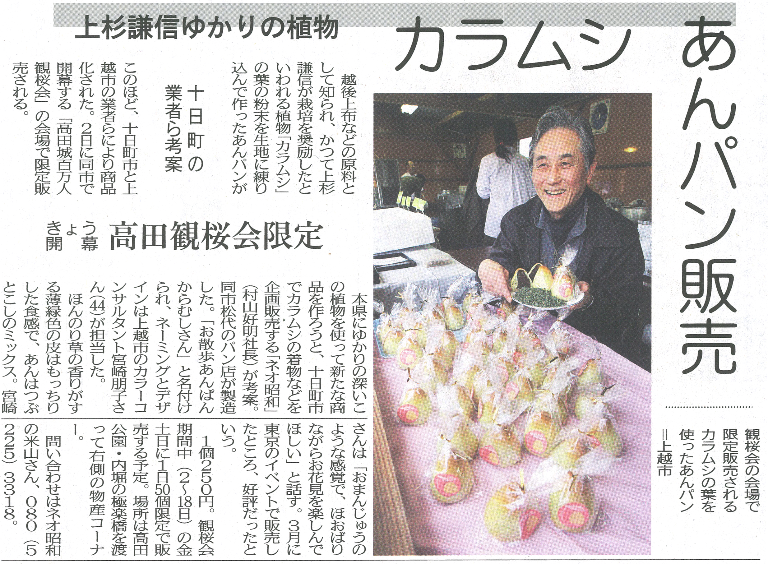 - 新聞「新潟日報」からむしあんパンについての記事が掲載されました。