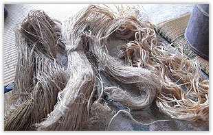 越後布の素材は、カラムシ (苧麻-ちょま) の靱皮(じんび)繊維を糸に績いだアオソ(青苧)を織りあげたもので正倉院所蔵の墨書銘のある越後布も麻布である。