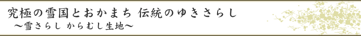 ★雪さらしとは…からむしの糸や布を、雪の上に置き、さらに雪をかけて、解けるのを待ちます。すると、綺麗に漂白されます。雪が解けるとき、水素イオンが発生して食物繊維を漂白するはたらきを利用したものです。雪と日光には殺菌の効果もあることから、カイコ用品やふとんわたなどの雪さらしも行われていました。