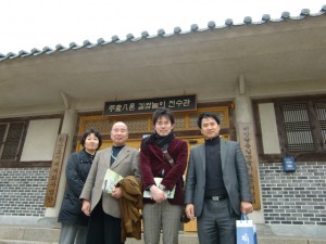 盧館長、羅さん、安さん、そして村山、日本国際観光学会永野さん、通訳の李さんです。ハンサンモシ館事務所で和やかな雰囲気で今後について話し合いが行なわれました。