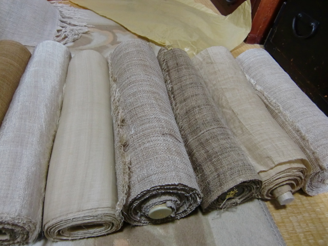 絹織物がありましたが感触は今のものとは全く異なります。大麻や苧麻もありますが糸の細さや織り方はうそと思われるくらいしっかりしています。