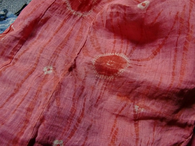 中には洗い張り後型染めをしたものも見受けられます。それにしても非常に細い糸です。おそらく今の日本では出来ないのではないでしょうか。