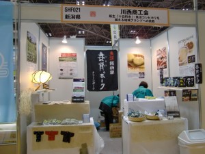 川西商工会の清水事務局長と大島さんの側面からの懸命な後押しの中、クロス10の庭野さん始め職員の皆さんの協力のもとファームランド木落さんの「妻有ポーク」、米土里夢さんの「あんぼ」と3社が出展し、それぞれ試食して頂きながら商談が出来るよう4日間頑張り通しました。