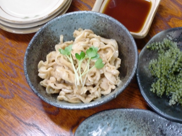 これは羽鳥社長が注文したミミガーです。ゴマ風味で黙っていれば何だかわからない美味しい味です。