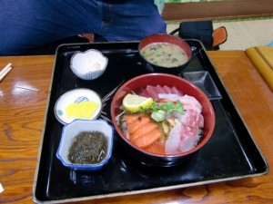 豪快な海鮮定食です。羽鳥社長が注文しました。