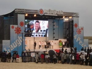 あまりの寒さに耐えきれず庭野ファミリーを連れてホテルに帰りました。これほど沖縄が寒いと思ったのは初めてです。途中吉本興業のテレビ局のアナウンサーに出会って東日本大震災の皆さんに強いメッセージをお願いしますと言われて出演しました。寒くて声も小さくなってしまいました。