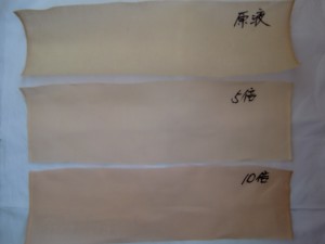 原液・5倍液・10倍液でそれぞれ染めてみました。