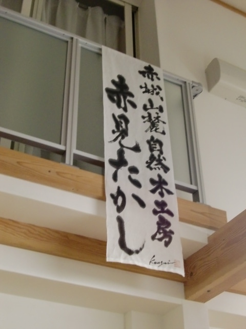 初めて訪れる工房には上を向いたら「からむし生地」で大きく書かれた「赤城山麓自然工房」の暖簾が掲げられていました。
