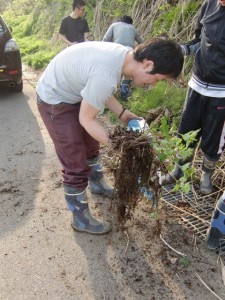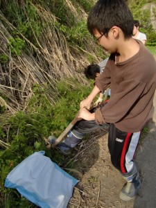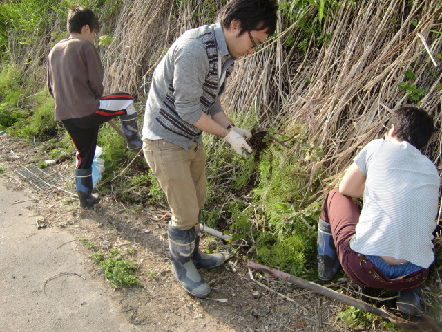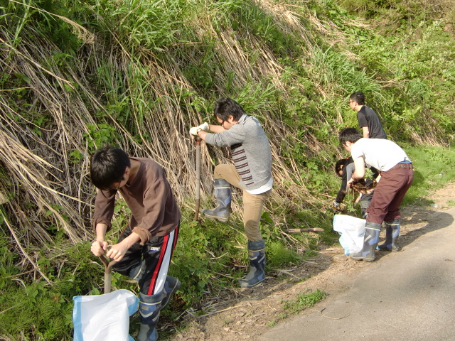 皆さん「からむし」の根を懸命に掘り起こしています。