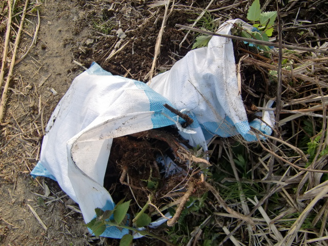 自宅裏の畑に植え付けました。これを小さなポットに入れて栽培します。