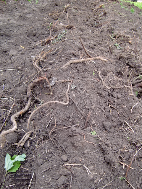 からむしの地下茎はものすごく長くしかも太いので掘り起こしに大変です。