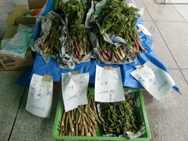 5月21日午前中はやや曇り空で山菜の販売には恵まれました。太陽の日照りで山菜が弱ってしまうからです。そして少しですが雨にも恵まれました。