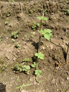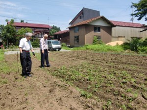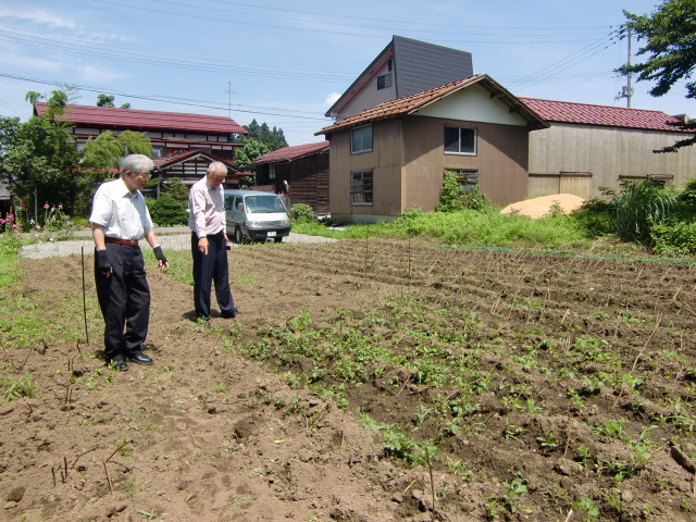一方親友村山久夫氏の畑に植え付けた「からむし」はまだまだこれからです。8月になればかなり大きくなるでしょう。