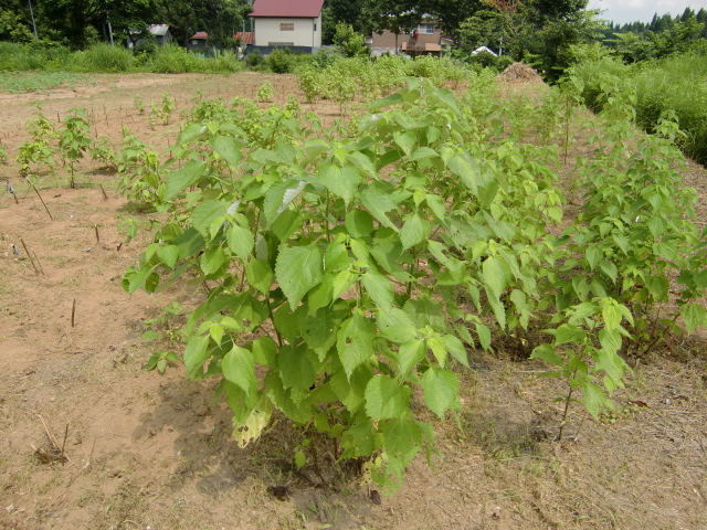 結いの里の「からむし畑」の草刈りは済みましたがちょっと元気がなさそうです。
