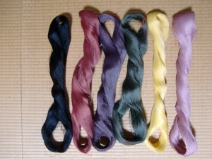 からむしの染め糸です。これも吊るすとどうなるのでしょうか。